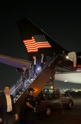 저격사건후 6시간이 지난 자정 직후 스스로 뉴오크 공항에 내리고 있는 트럼프 전 대통령( 사진 =트럼프 보좌관 마고 마틴 SNS 캡처)