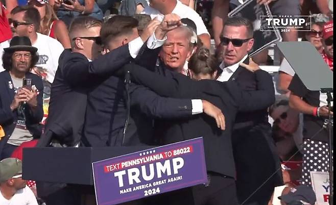 트럼프 전 대통령이 총격으로 오른쪽 귀를 다쳤지만, 경호원들의 도움을 받으며 연단을 떠나면서도 주먹을 불끈 쥐고 지지자들에게 인사하는 등 강인한 모습을 보여 호평을 받았다.
